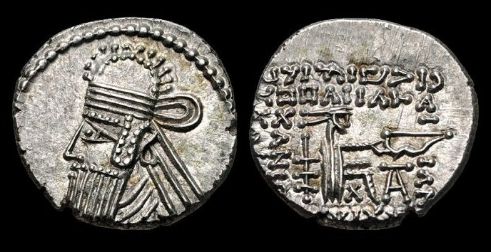 | • Arsaces I à Artaban III • Mithradates II • Sinatruces à Arsaces XVI • Phraates III et Mithradates IV • Orodes II • Phraates IV et Tiridates • Phraataces à Meherdates • Vologèses I à Vologèses III • Osroes I à Artaban VI • Quelques monnaies sassanides |