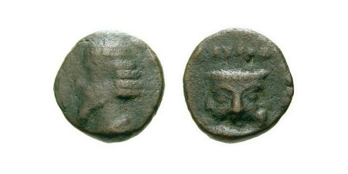 • PHRAATES IV (38-2) AE Atelier : Ecbatane • Monogramme Tête de taureau surmontée d'une étoile Etoile sur un croissant à gauche |
