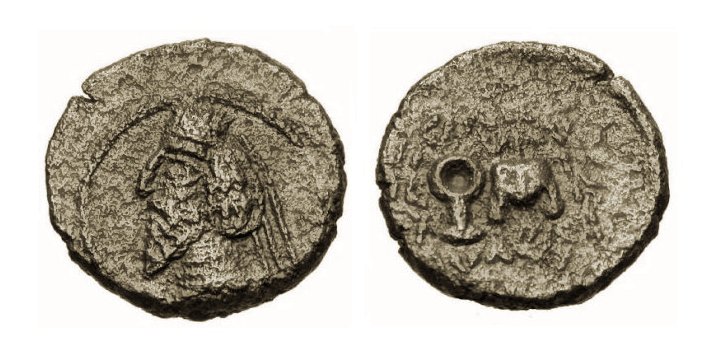 • Croissant derrière l'archer BAΣIΛEΩΣ BAΣIΛEΩN / APΣAKoY / EYEPΓEToY ΔIKAIoY / EΠIΦANoYΣ ΦIΛEΛΛHNoΣ |