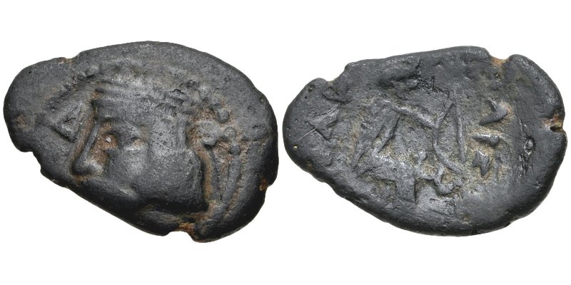 • VOLOGESES Ier (51-78) AE Atelier : Séleucie Av Buste du roi à gauche . ΓΠT=383 (71/72 apr. J.-C.) Rv Buste de Tyche à droite . Monogramme à droite |