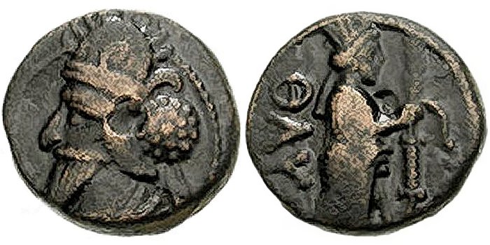 • ARTABAN IV (80-90) AE Atelier : Séleucie Av Buste du roi à gauche . ΔϘT=395 (82/83 apr. J.-C.) Rv Buste de Tyche à droite . A droite